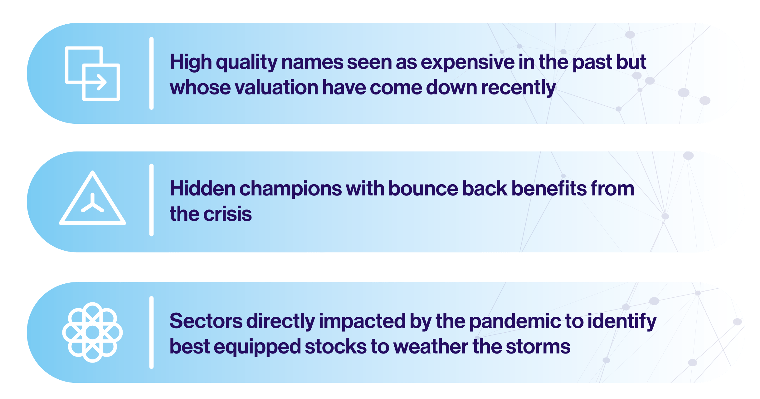 Whilst it is difficult to estimate a realistic timeframe for recovery, investors with a long investment horizon are already sizing up opportunities to enter into quality names which were trading at levels deemed unattractive in the past. Further to this, they are also naturally casting a particularly close eye on the sectors most affected by COVID-19, in order to ascertain the reasons for the dislocations affecting these stocks. In other words, whoever is harnessing the potential of alpha generation is currently trying to dissect the technical from the fundamental, to eliminate the least efficient models and to spot the most defensive and resilient ones. On the flip side, as consumer behaviour adjusts to the enforced lockdowns around much of the world, it will create opportunities for certain issuers, resulting in increased attention from investors.